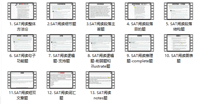 SAT备考录播课程培训将SAT阅读/语法难点梳理为清晰的知识点,每节课聚焦一个核心考点:
