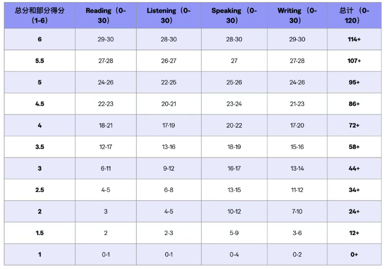 而新托福分数的核心换算逻辑,是“原始分→量表分→等级分”的三级转换,先按题型给分,再经统计学换算,最终对标C2语言水平,公平性拉满但容错率更严。