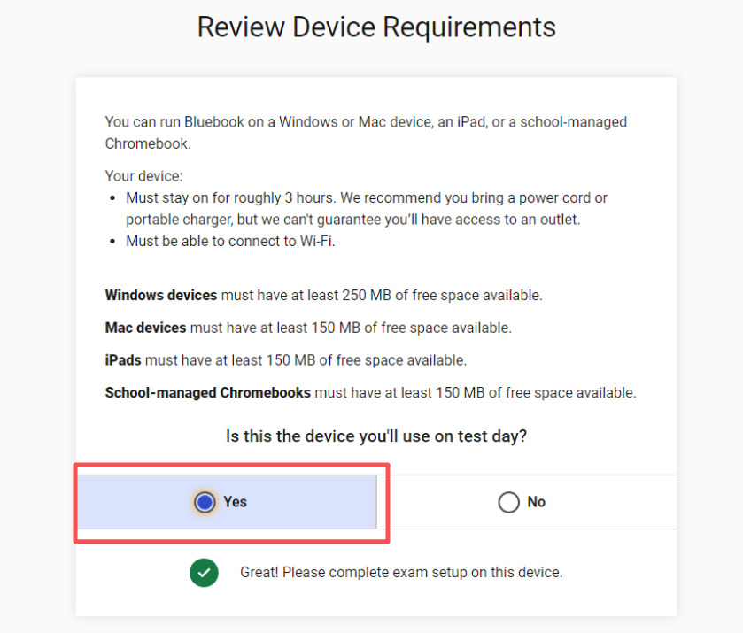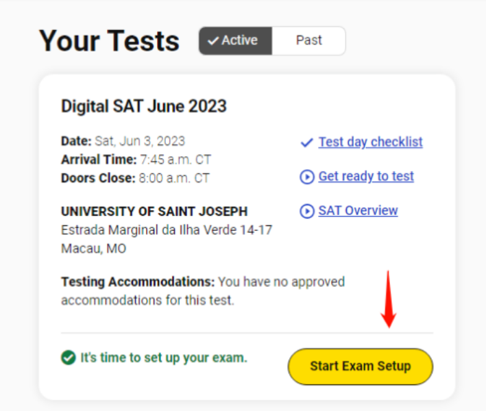 用Collegeboard账户密码登入Bluebook后即可看到如下页面:点击Start Exam Setup按钮进行设备设置确认个人信息是否正确,如果正确点击next。请确认此处的姓名拼写,是否与证件上的拼写一致。设备信息,选择yes,然后点击next。请注意,一旦设置完成后,就不能够更改设备了,所以一定要使用考试当天要用的设备,来进行设置。等待考试下载,部分电脑可能会下载较慢,稍等几分钟即可。然后点击next。生成准考证,选择print打印成pdf文件保存,或者发送到邮箱保存到这里,SAT准考证下载流程就已经准备完毕啦~祝大家SAT都是1550+哈~扫码获取免费模考+试听1次👇