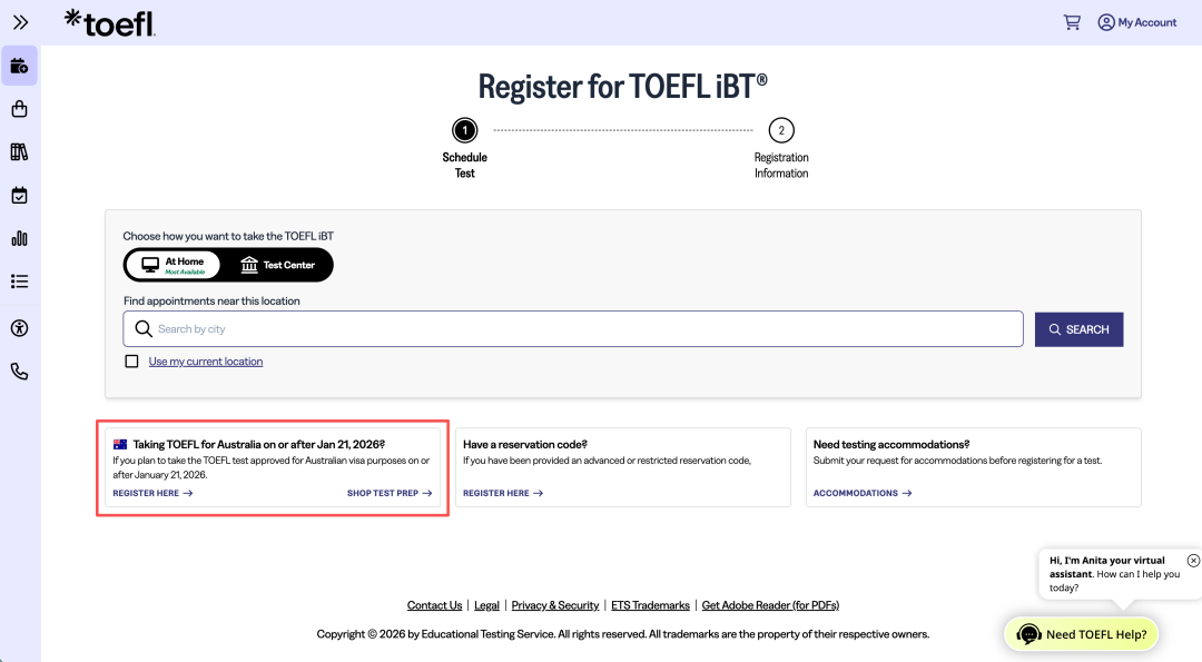 该考试沿用0-120分传统评分体系,*可全面满足澳大利亚签证的英语语言要求,同时适配澳洲所有院校的入学审核标准,确保*被广泛认可。考生可访问ETS官网,查询该考试的报考流程、考点信息等更多详情。