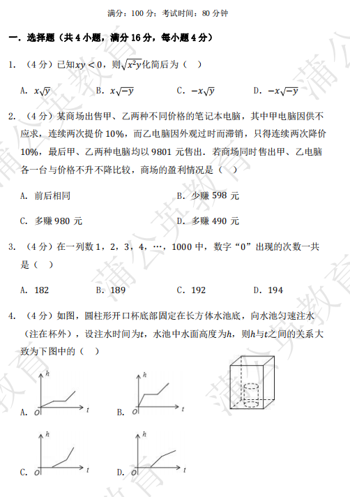 *秋招开启!上海国际高中入学考试卷-WLSA数学真题PDF
