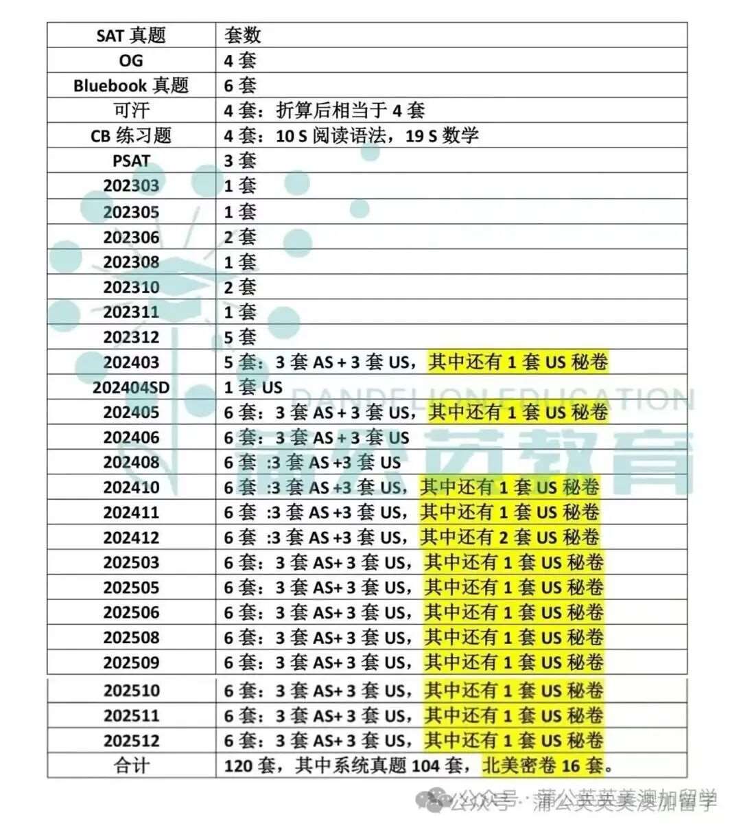 蒲公英密卷是绝大部分机构用的系统里没有的真题,部分系统里有一些北美的题目,但是还是有大概9套秘卷很多系统里也没有。这些题目更难、更具有代表性、中的概率更高,特别适合冲 1550+的学生使用。