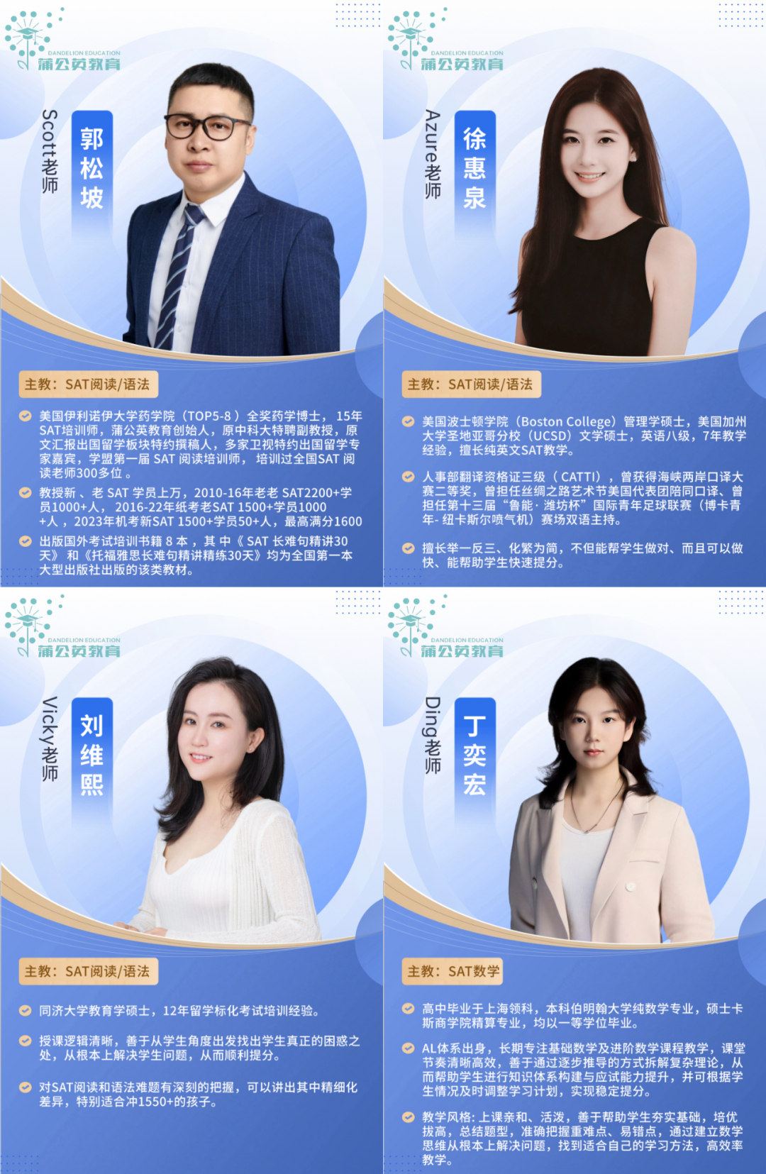 在蒲公英教育,SAT考试专业服务: