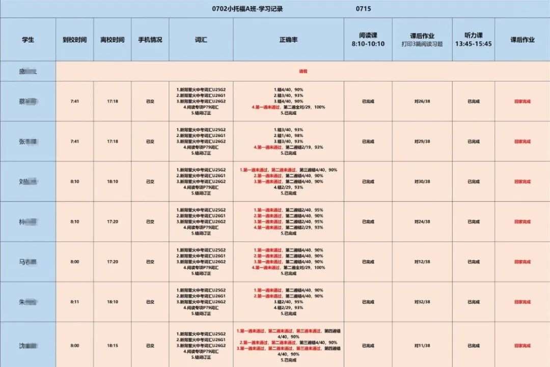 图片分为提能班、预备班、基础班,强化班和冲分班,学员先测试水平再入班