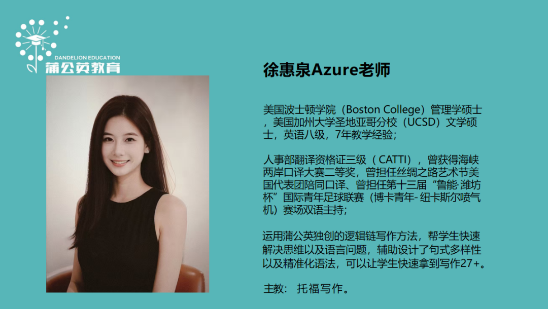 这个暑假,欢迎加入上海蒲公英教育暑假托福线下培训班,让专业团队带你高效备考、突破瓶颈,实现托福分数跨越式提升!