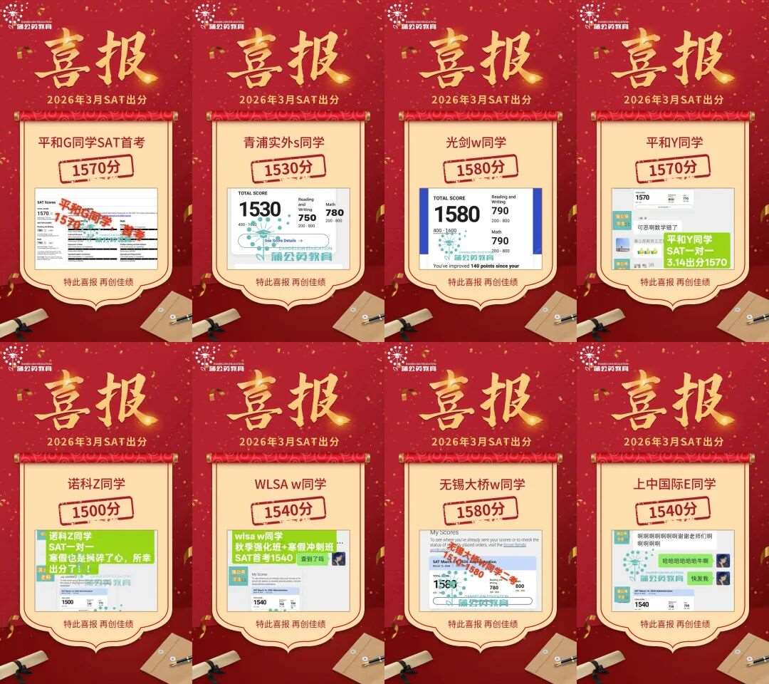 例如在2026年3月的SAT考试中,上海蒲公英教育的SAT学员们取得了令人瞩目的*。