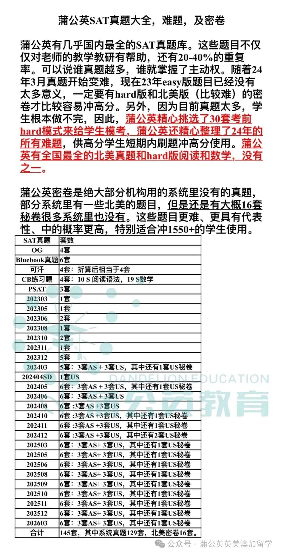 2026年3月蒲公英部分SAT高分喜报