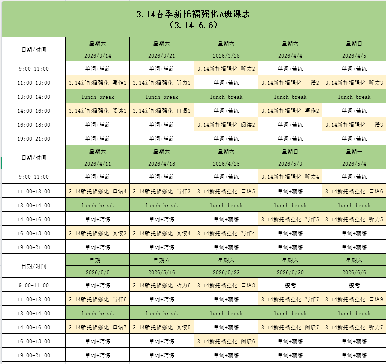 接下来和大家分别介绍一下上海托福线下培训班:蒲公英新托福强化班与新托福冲刺班: