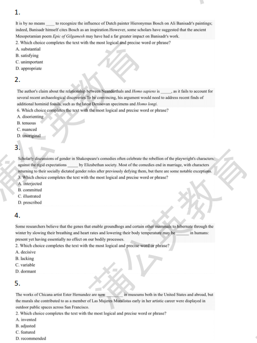 这份SAT难题集全模块覆盖,专为突破高分瓶颈整理,覆盖三大核心题型,直击各类高频失分点!(文末领取完整版SAT真题难题集资料)