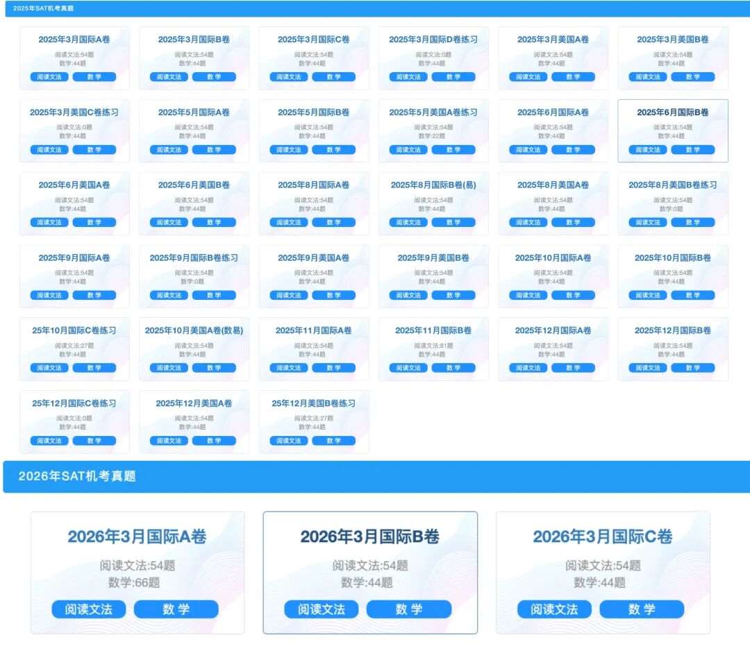 蒲公英坐拥国内近乎*全的SAT真题库,真题重复率高达 20%-40%,手握更多真题就掌握备考主动权。自2024年3月起真题难度提升,旧版简易题目参考价值有限,冲刺高分必须依靠 Hard 版与北美版难题密卷。