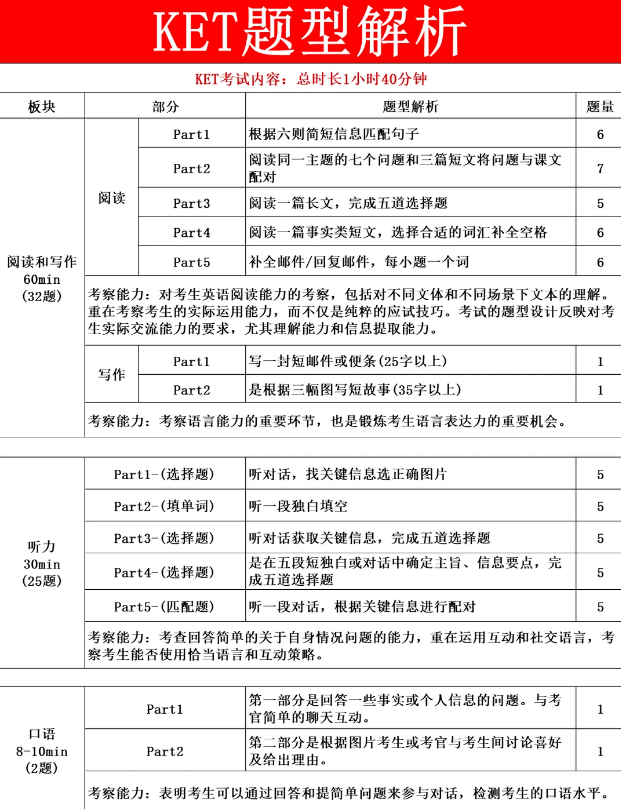 KET考试内容: