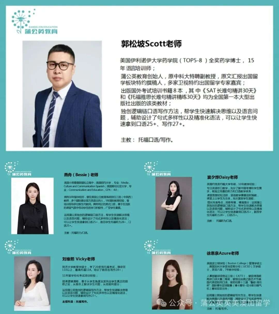 蒲 公 英 教 育 托 福 师 资 介 绍