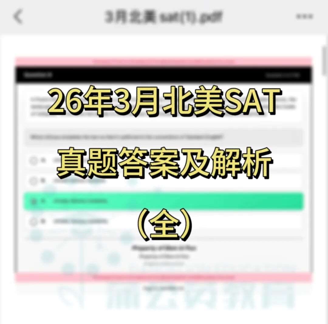 欢迎关注我们,文末有2026年3月SAT北美真题答案pdf汇总供您领取!(2026年3月SAT北美真题答案pdf电子版免费领取)
