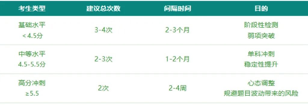 不同水平考生考试次数参考