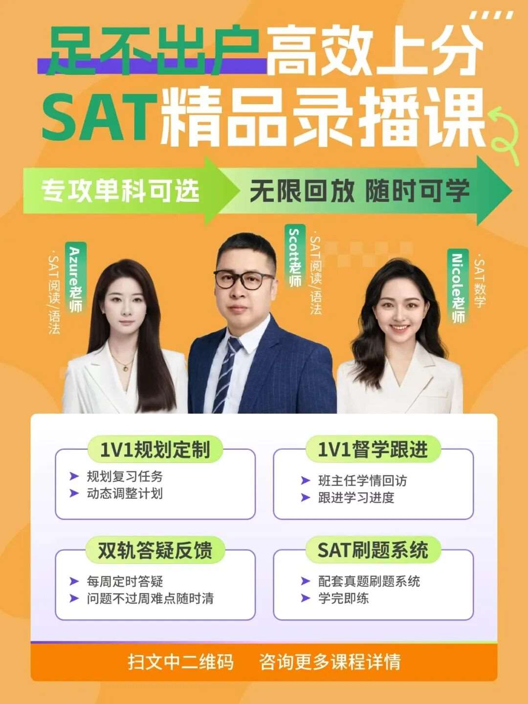 课程拒绝“填鸭式”灌输,精准匹配2025年SAT机考趋势,分模块击破备考。