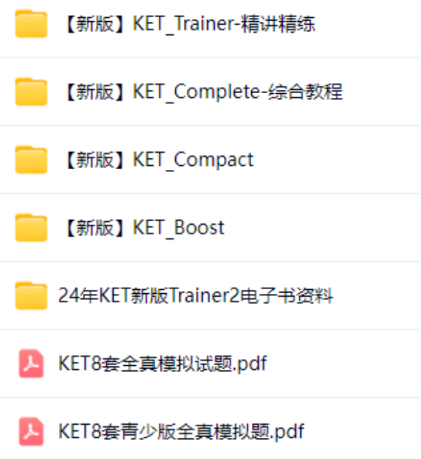 KET知识点杂?资料搜集不齐全?别担心!老师特地为备考KET的孩子们准备了KET考试备考资料包,KET真题/教材/词汇/语法全覆盖。【KET资料免费获取】