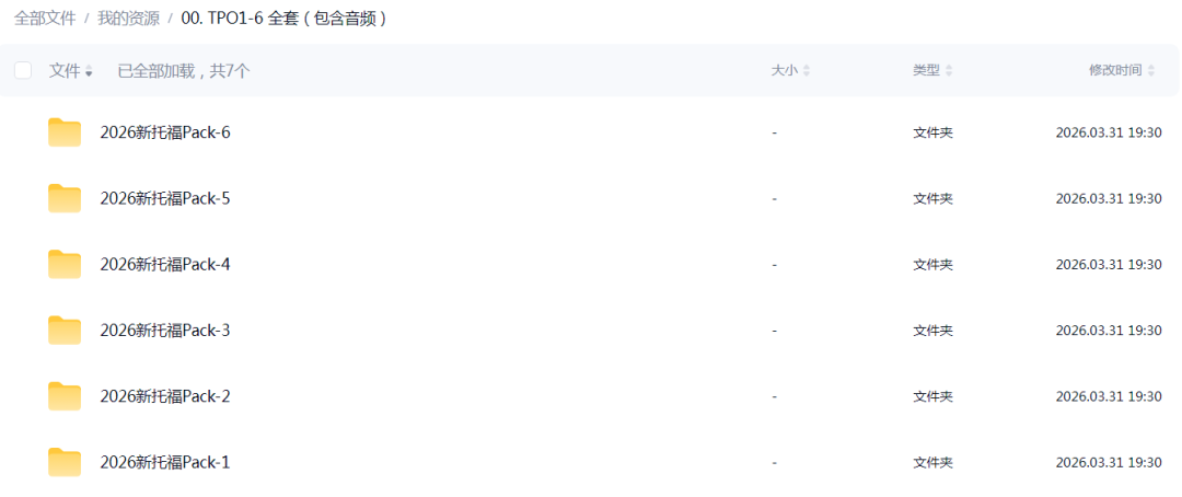【托福资料合集pdf免费分享!】2026年新托福真题卷完整版TPO1-6全套(含听力音频+答案)