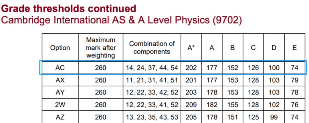 A-Level 最终*按 UMS 统一标准分划分等级,具体对应区间: