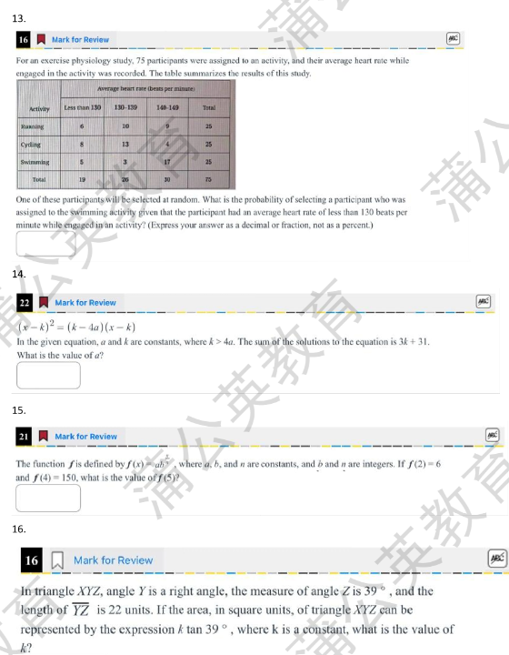 2026年最新SAT数学真题难题合集pdf汇总电子版部分展示: