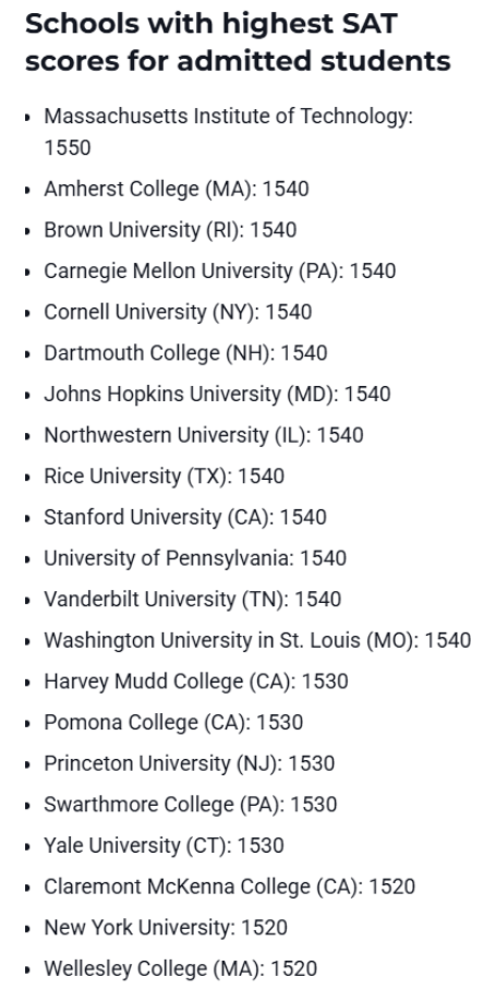 普林斯顿、耶鲁、纽大等学校,新生 SAT 分数则稳定在 1530-1520 分段。