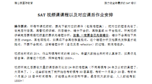 如今SAT培训机构琳琅满目,家长们也越来越清醒务实:不再为“大而全”的宣传噱头买单,只关心*实在的问题——这门课,真能解决我家孩子的备考痛点吗?