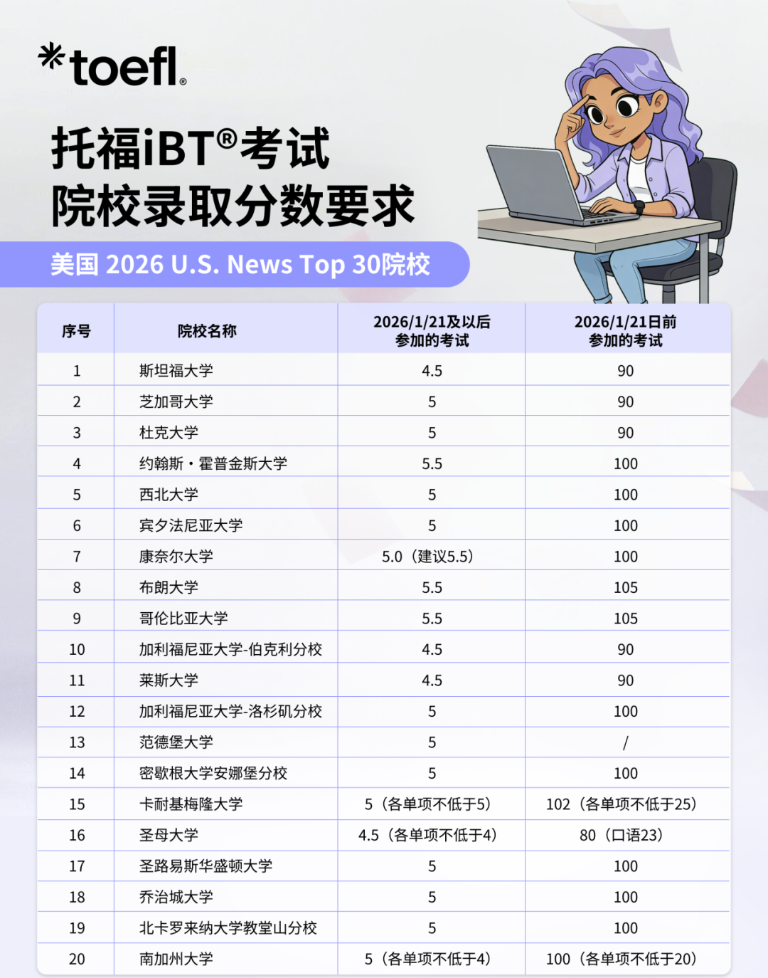 以上是对“别被误导!不明确要求≠不接受!多所美国TOP大学最新新托福*要求重磅出炉”内容的解读。