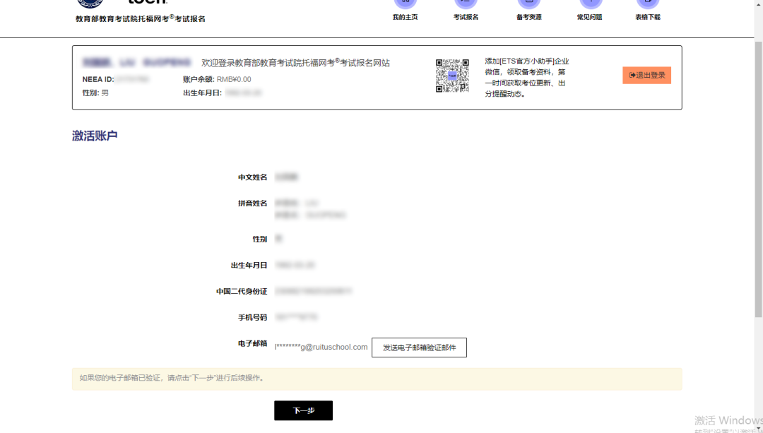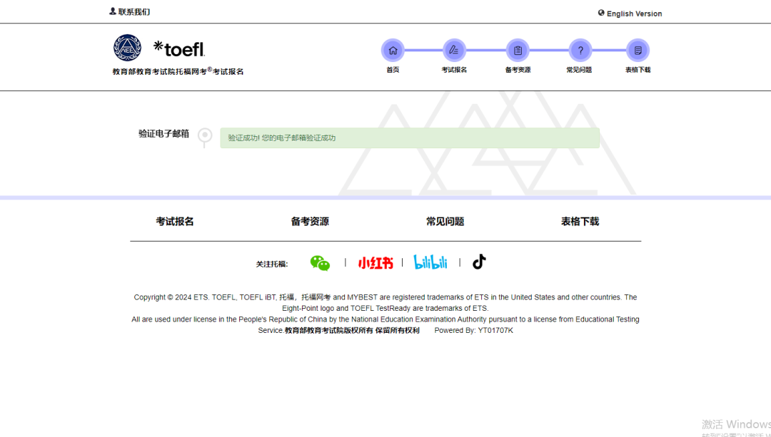 完成注册后,必须完成邮箱 + 手机号双重验证,账号激活成功后方可进行考试报名。