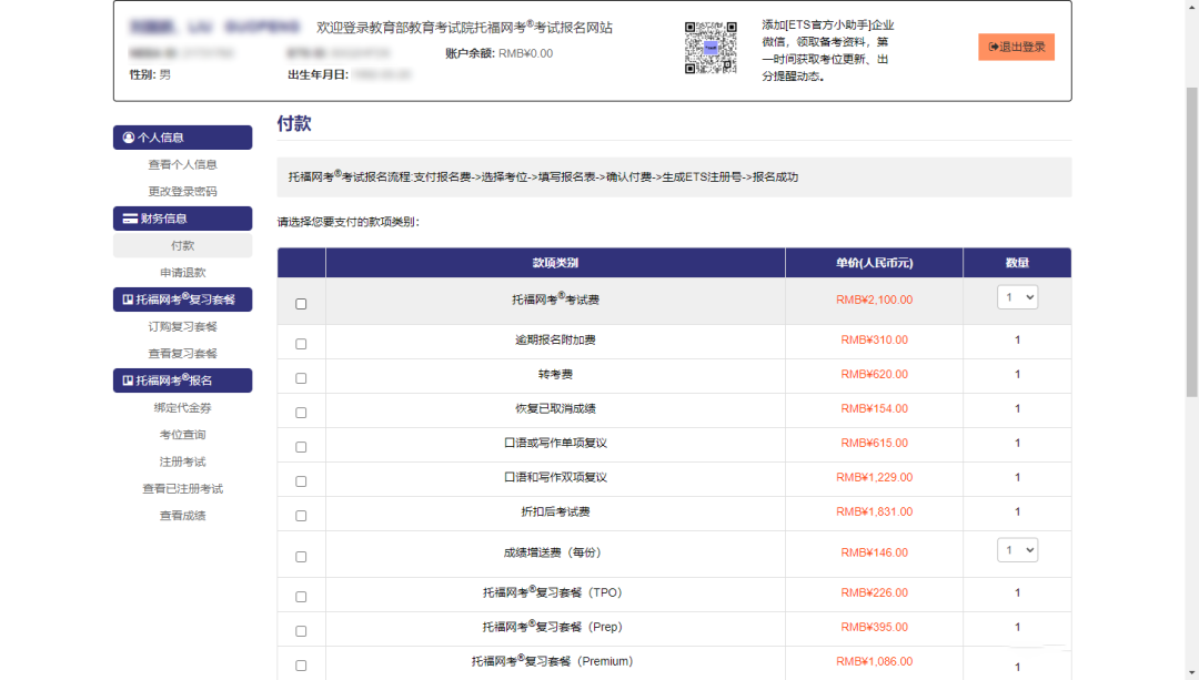 选定考位并完成支付,即为报名成功。当前托福考试费用为2100 元。