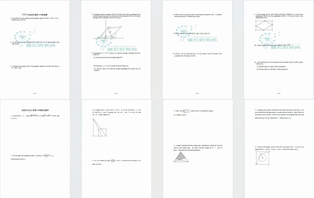 考试内容:三角形旋转,一元二次方程,化简,求根式,证明平行四边形,动点问题,等边三角形;计算题主要考察八上的计算,如实数、二次根式、根式。