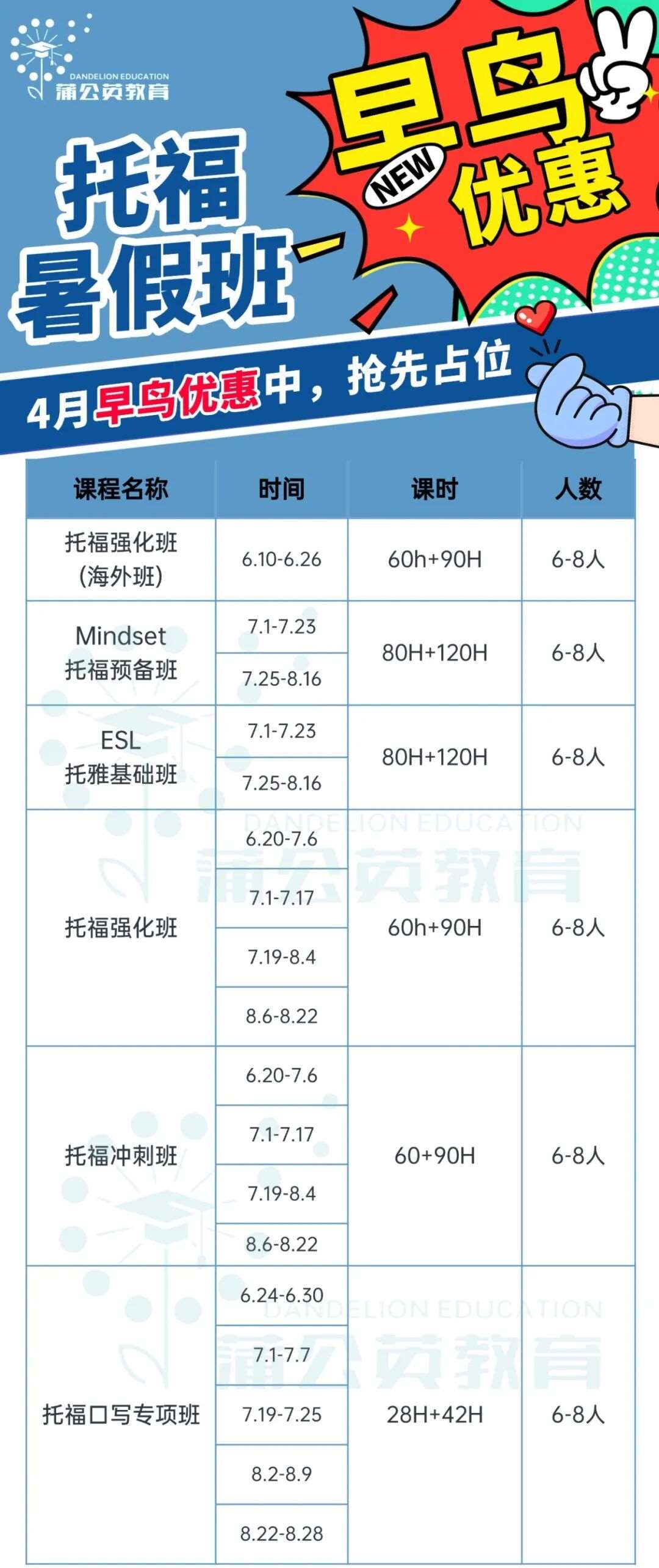 若你有托福需求,欢迎找小蒲!上海蒲公英教育托福寒假课程招生进行中,招满即停,快来抢占名额~