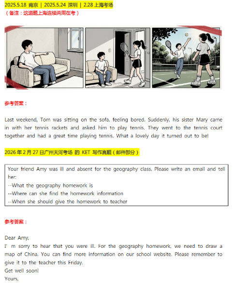 欢迎关注我们,文末有2026年1-2月KET口语写作真题pdf汇总供您领取!