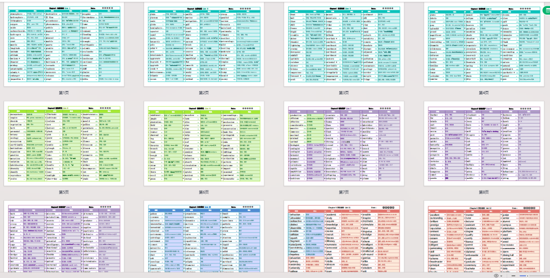 颜值超高的彩绘表格的设计,不同主题场景对应不同颜色,既能提升学习欲望,又能借助颜色加深记忆,减少背书压力,雅思词汇真经pdf电子版完整还原彩绘表格,可打印可批注,适配不同学习习惯的烤鸭。