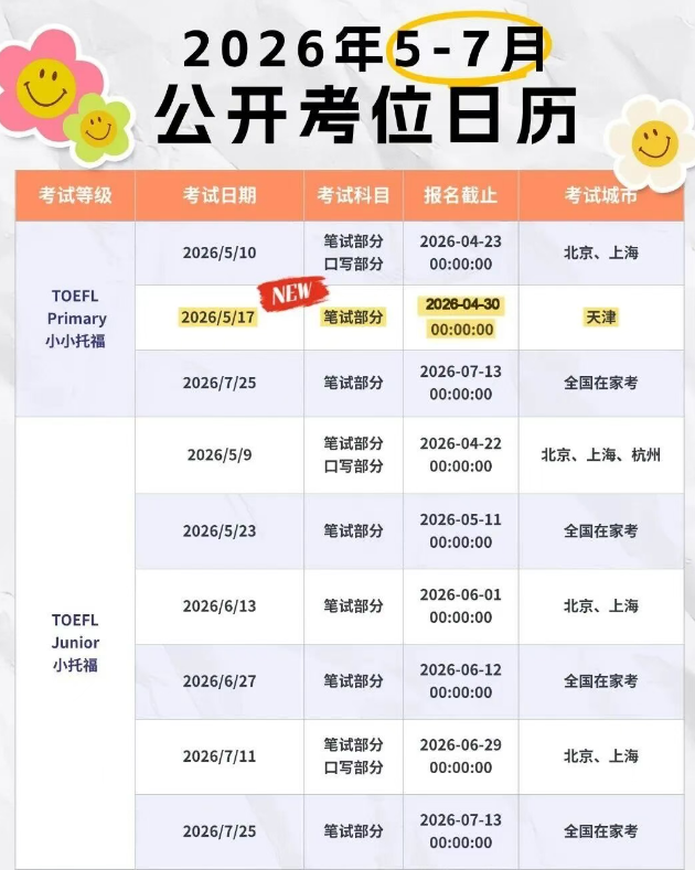 2026年5-7月考位盘点,这些关键节点别错过